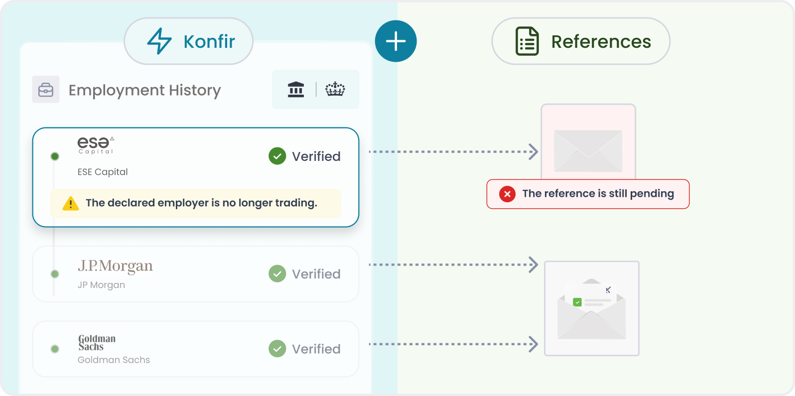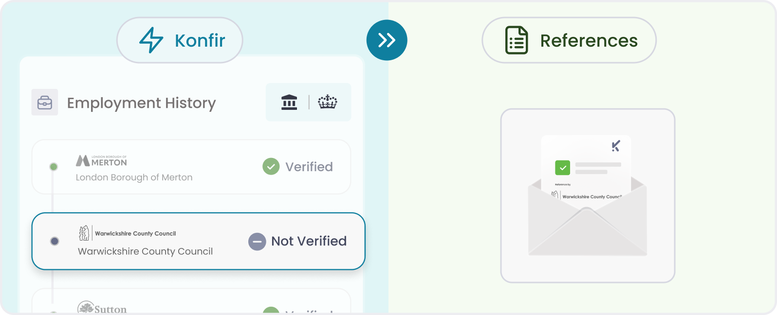 Where Konfir data verifies an employment activity, no reference is required. Instead, references are only initiated where an activity cannot be verified digitally, or where Konfir’s alerts and insights surface new or material risk that may require further assessment.