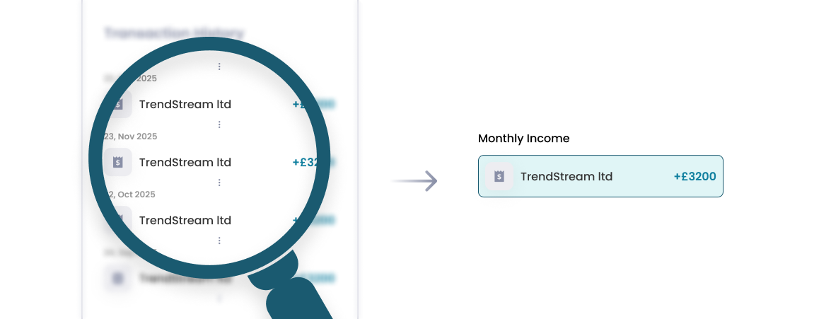 Transaction histories can contain identifiable signals of income. Regular salary deposits from employers often appear as recurring payments, sometimes with recognisable descriptors, and when these patterns are consistent, they can provide a strong indication of employment income. When these signals can be reliably identified, Open Banking data can be used to estimate an applicant’s earnings and support affordability assessments without requiring additional documentation or third-party verification.